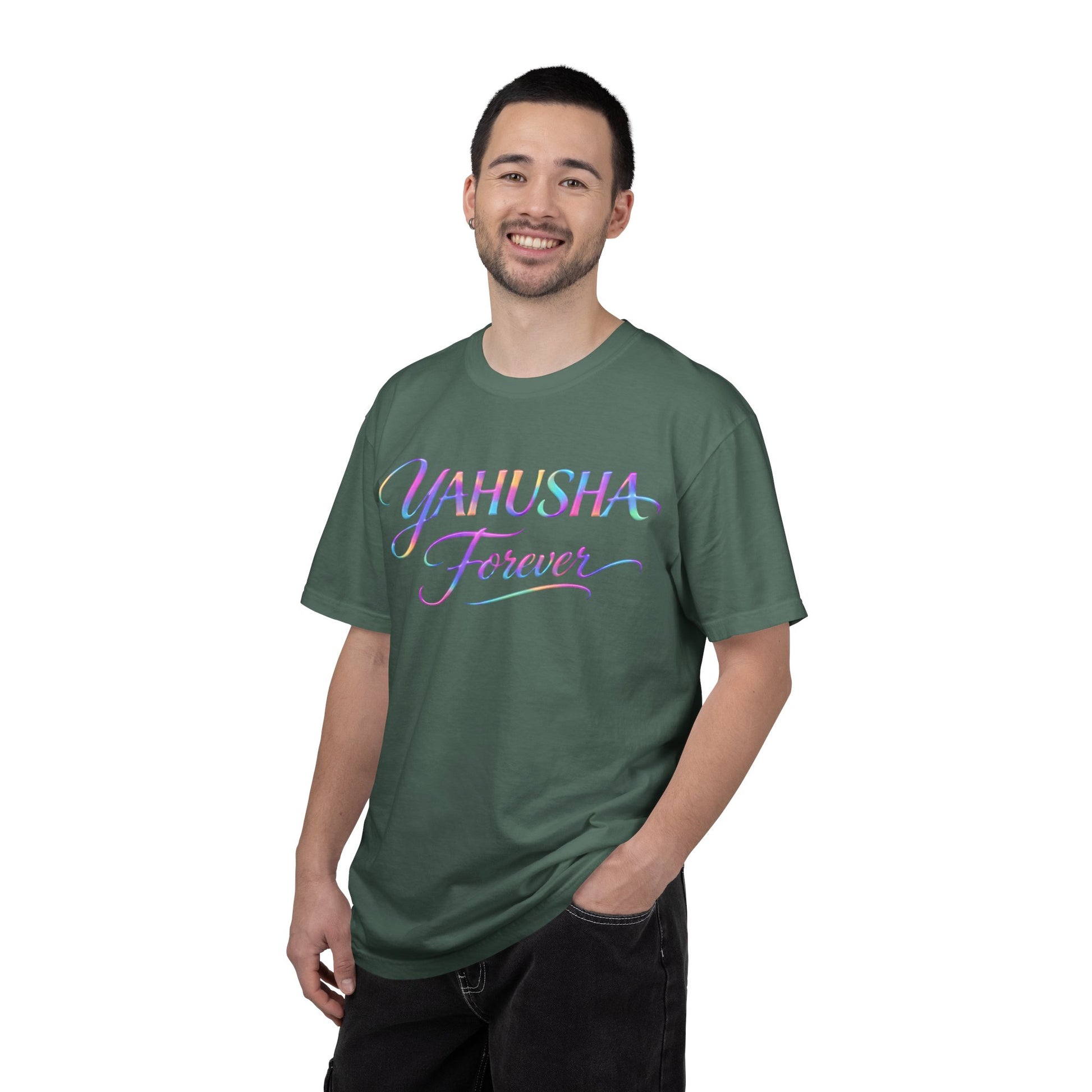 This garment-dyed tee carries a calm, devotional energy. Soft, lived-in cotton drapes in a relaxed fit while a flowing, pastel script on the front reads “Yahusha Forever,” a gentle declaration that feels personal rather than loud. It’s a shirt you reach for when you want to wear your faith with quiet confidence — at community gatherings, weekend worship meetups, or simply while sipping coffee and reading scripture. The heavyweight, pre-shrunk fabric and tubular construction make it durable and pleasantly soft; the garment-dye gives each piece a subtle, vintage wash so the colors and lettering sit like a watercolor on cloth. Available in a wide range of colors and sizes, this tee sits comfortably in everyday life and seasonal celebrations alike.